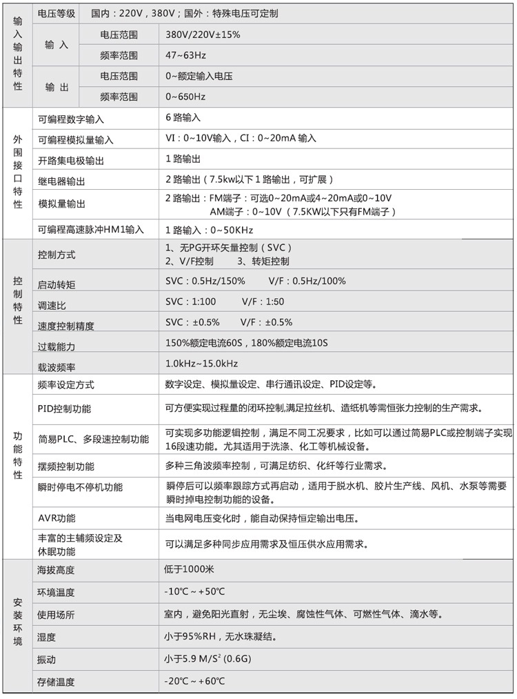 ■有PG矢量控制低频力矩达180%,无PG矢量控制低频力矩达150%,输出平稳